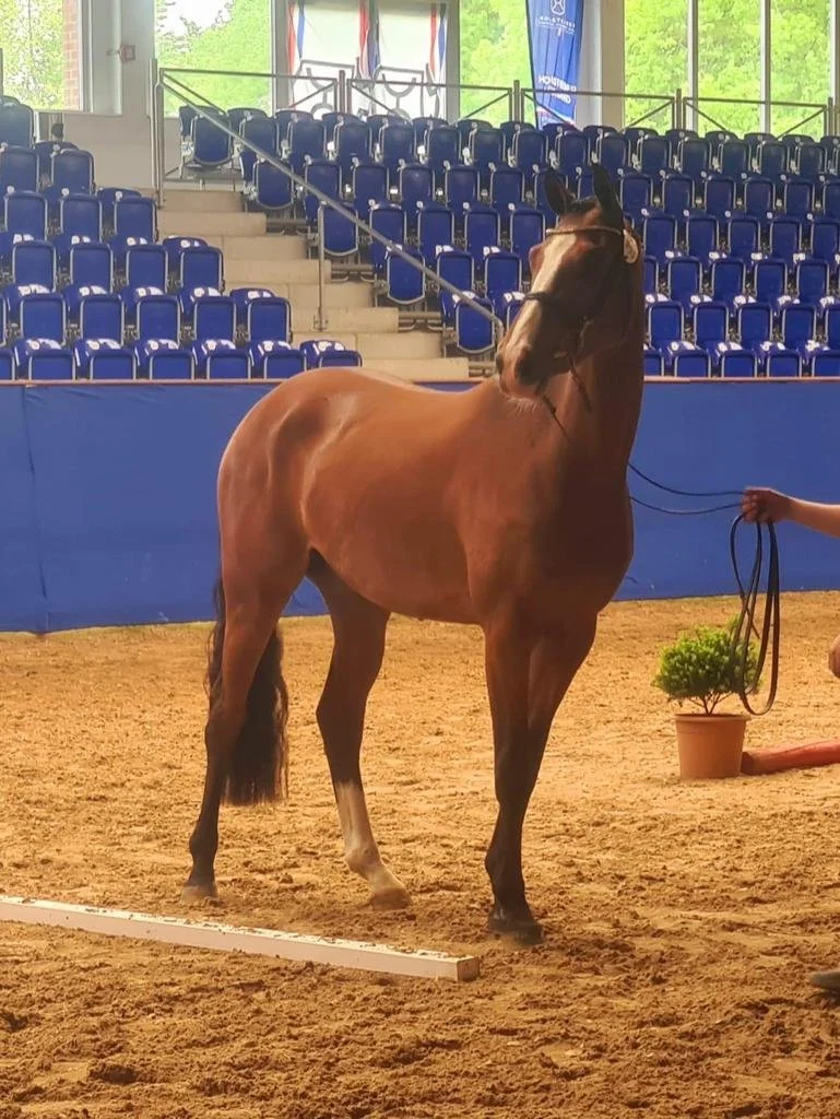 M-Ogi (PEDIGREE)is a special mare that was just added to our broodmare band in 2022 and purchased as a foal. She hails from Stamm 242 which is the Stamm from Hengstation Haselau. M-Ogi received an 8 for Rideability and an outstanding 10 for jumping at her mare performance test. She was awarded Statespremium status and finished on the final ring at the Elite Stutenshau. This world class mare is one of only 3 daughters of the late Estelle(Nicknamed Emogi) one who was also a Statespremium mare, and the other who is targeted for the top of sport. She is currently bred back to Meganus PS for a 2025 foal.